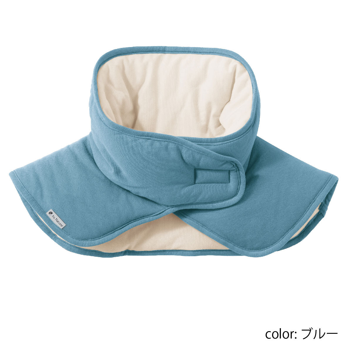 首を包む立体設計でズレにくく、面ファスナーで着脱簡単。